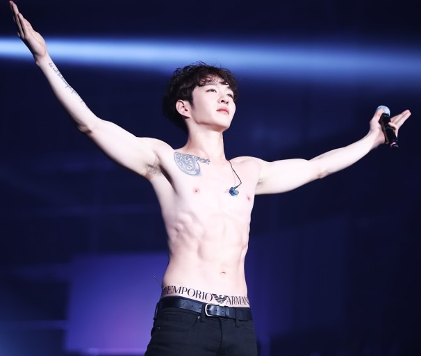 창섭이는 팬들과의 약속으로 복근을 공개하기 위하여
